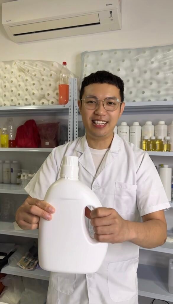 「以前我只是在家带孩子,收入全靠老公。跟着老师学习后,我自己在家就能做洗碗液、洗衣液,亲戚朋友都来跟我买。我第一周就卖了 18 桶,赚到的比我想象中更多!最重要是可以一边照顾家庭,一边有自己的收入。」